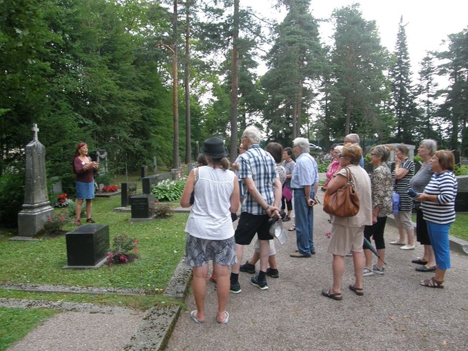 ![]() Kesällä 2014 opastuksessa Veistosten sotaa ja rauhaa, Lahden Sankarihautausmaalla. Kesällä 2021 tutustuttiin kahden tunnin ajan tähän Ristinkirkon Sankarihautausmaahan, johon on haudattu outojakin tapahtumia kokeneita talvi- ja jatkosodassa kaatuneita sankarivainajia. |